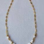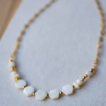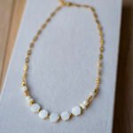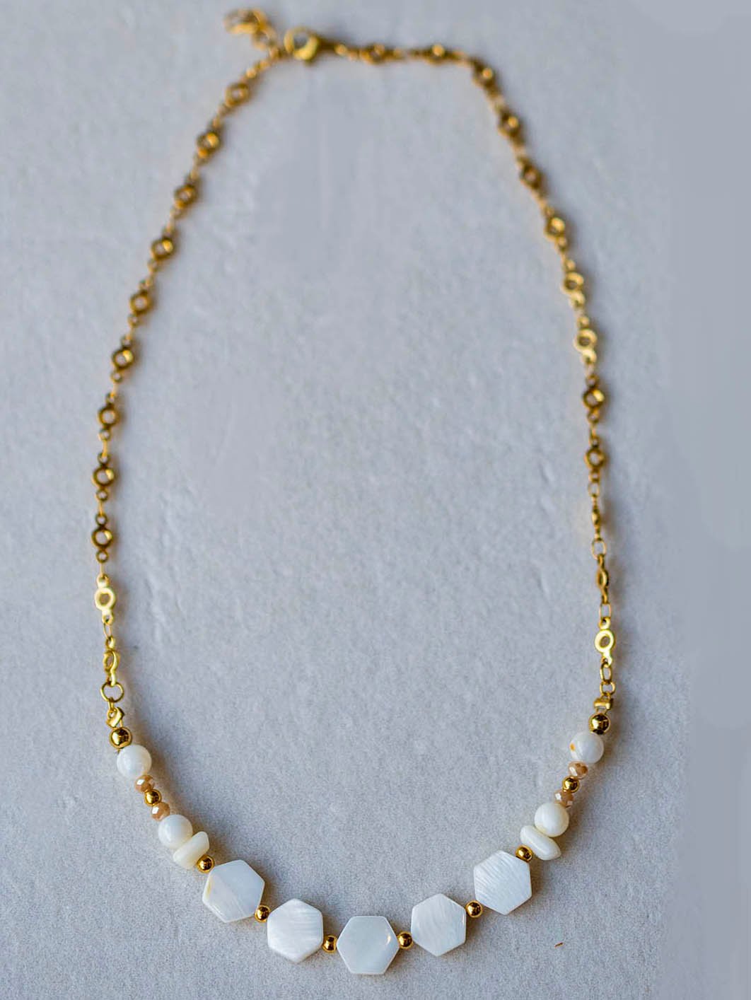 Χειροποίητο κολιέ με ατσάλινη αλυσίδα σε χρυσό χρώμα και λευκό πέτρες