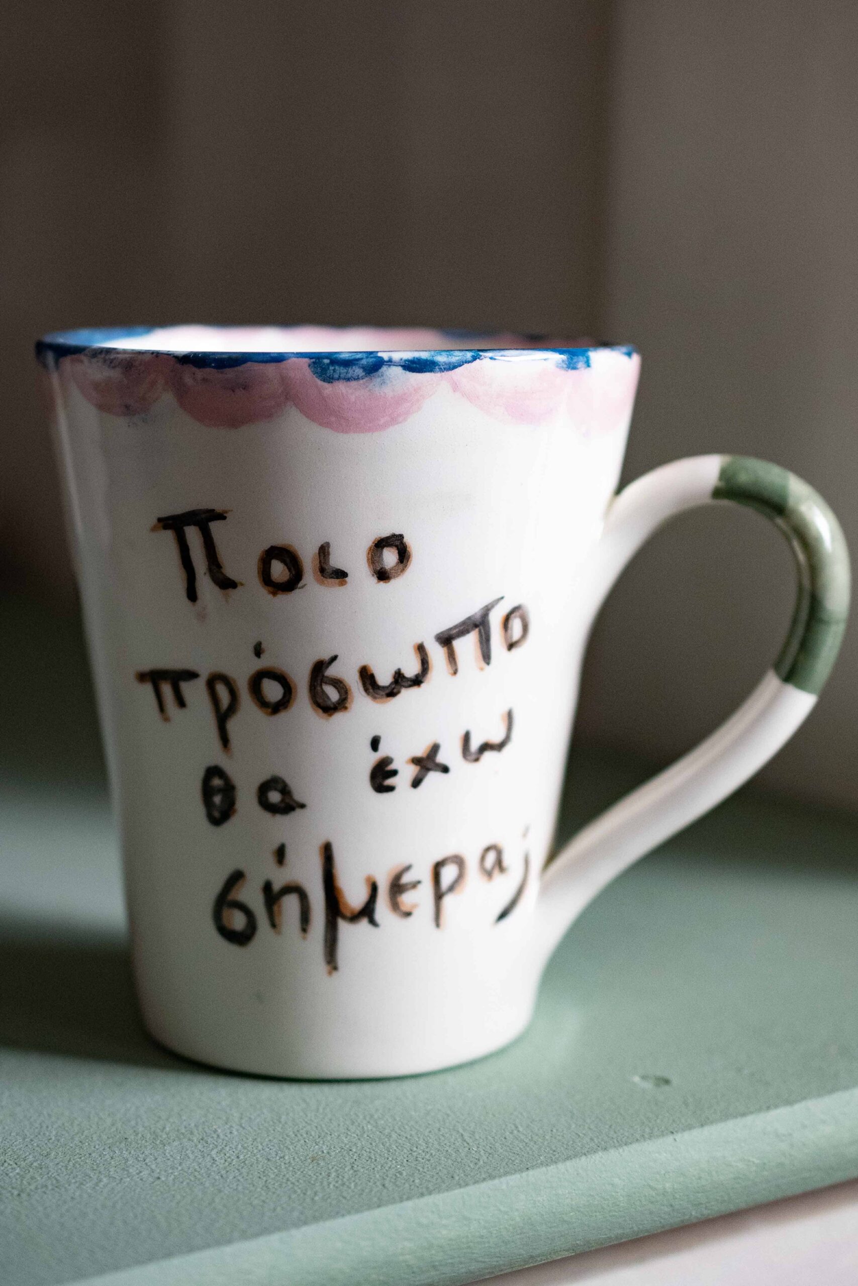 Χειροποίητη κεραμική κούπα “Ποιο πρόσωπο έχω σήμερα;”