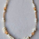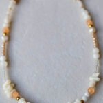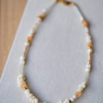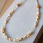 Χειροποίητο κολιέ σε λευκό με ημιπολύτιμες πέτρες, πέρλες και φίλντισι
