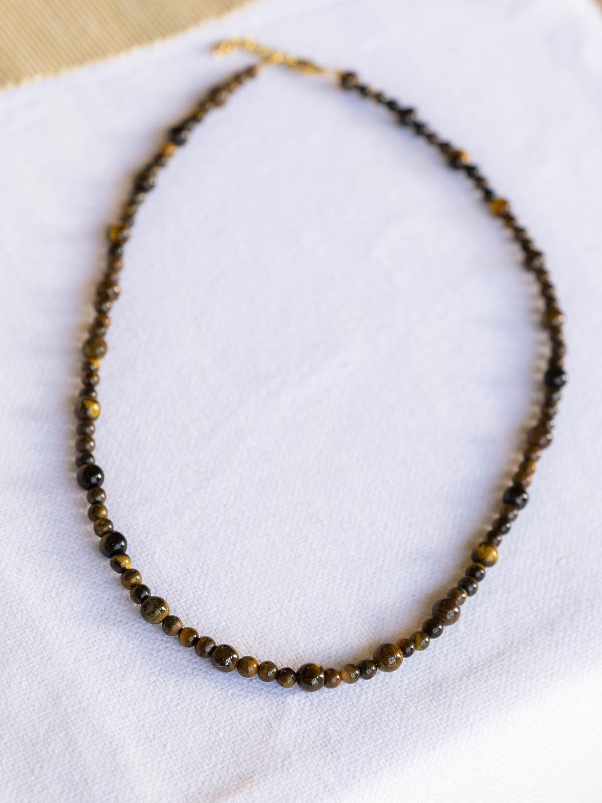 Χειροποίητο κολιέ με ημιπολύτιμές μάτι του τίγρης σε διαφορετικό μέγεθος.